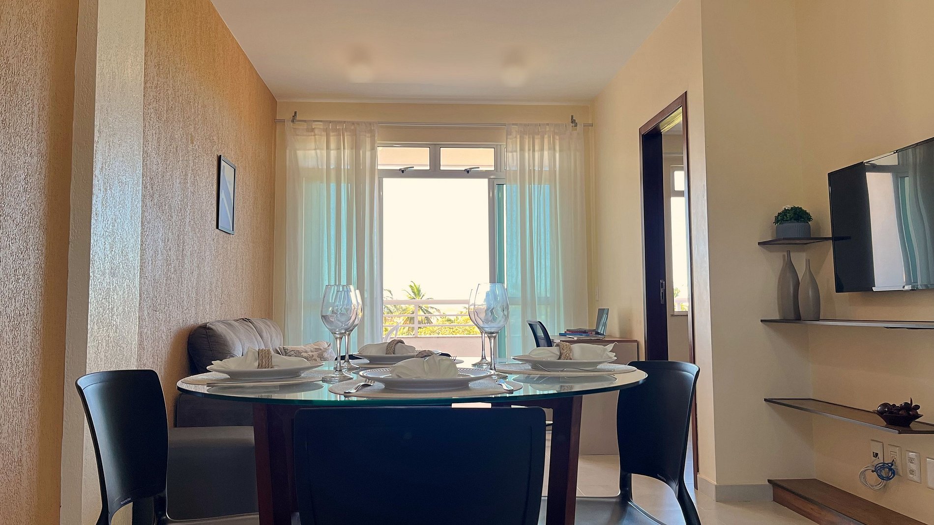 Aqui, você encontrará um espaço familiar e acolhedor ideal para quem busca tranquilidade e conforto. No apartamento acomoda-se quatro pessoas, possui uma sala ampla com sofá reclinável, cozinha americana (itens necessários para sua estadia), duas suítes climatizadas com ducha quente e uma varanda com vista para natureza dos coqueirais em direção ao mar tendo uma ótima ventilação natural. Oferecemos roupa de cama e toalhas, secador, wifi, TV e possui estacionamento privativo.