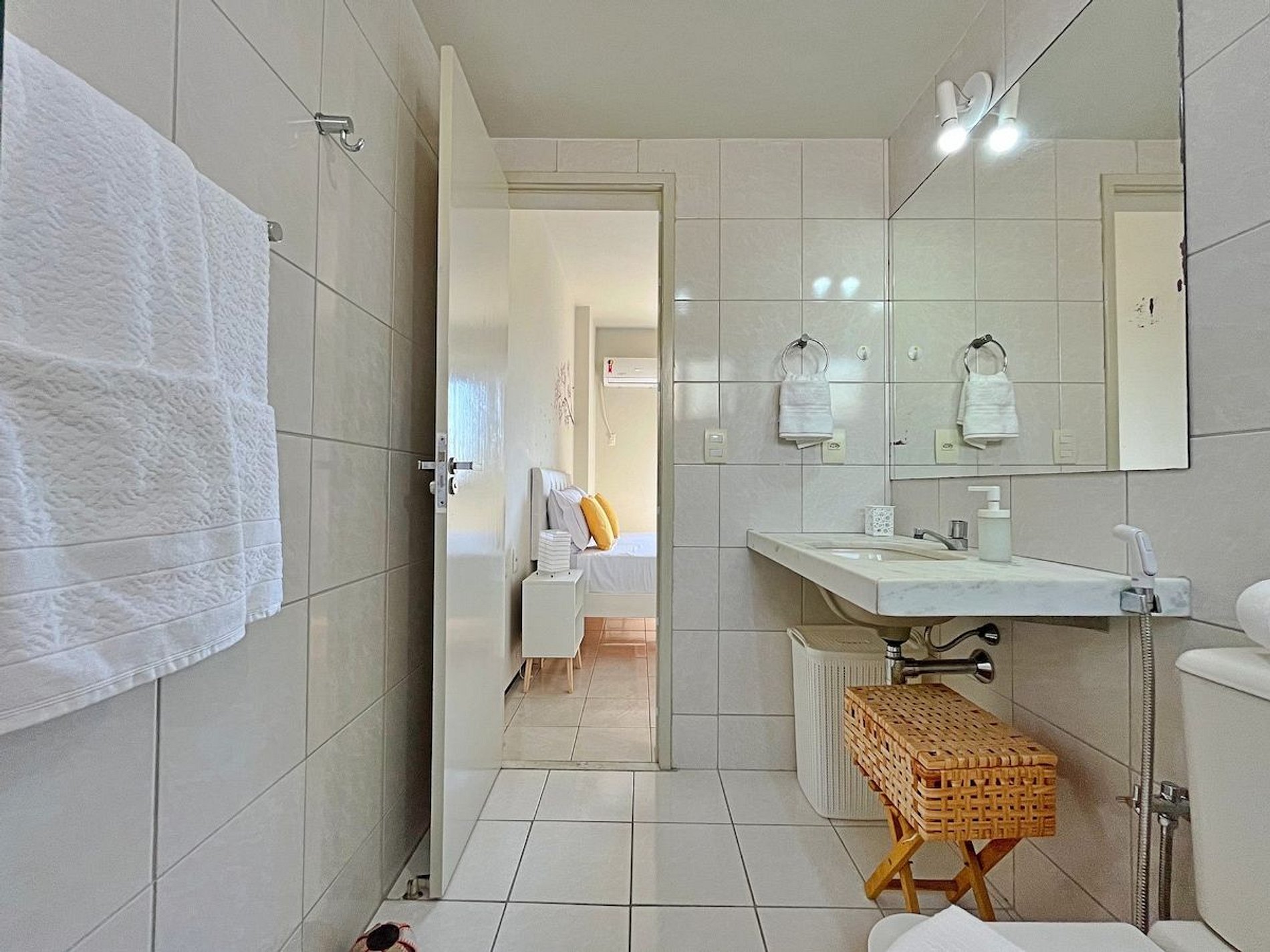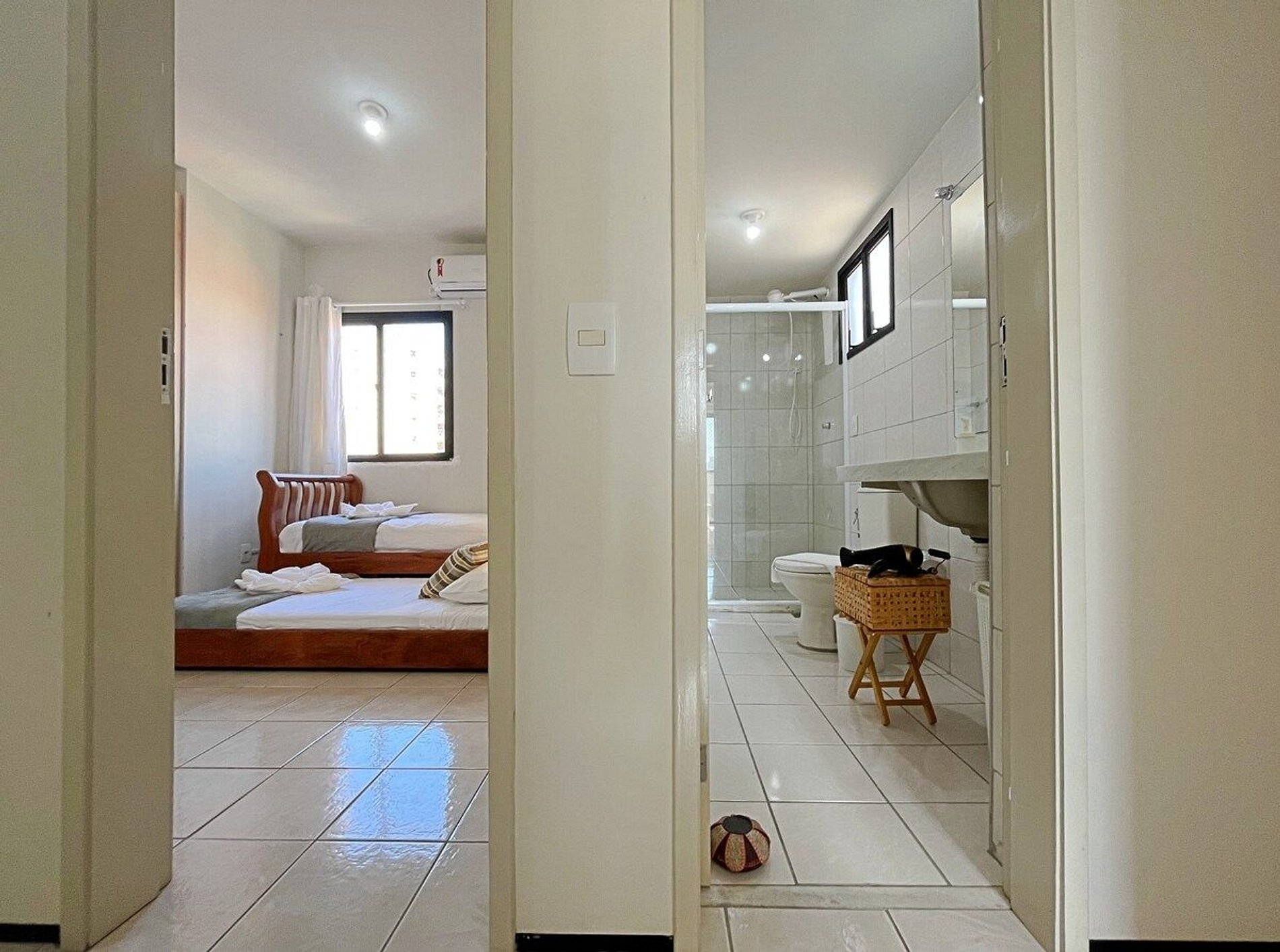 O apartamento inteiro para os hóspedes e uso da área comum do condomínio.